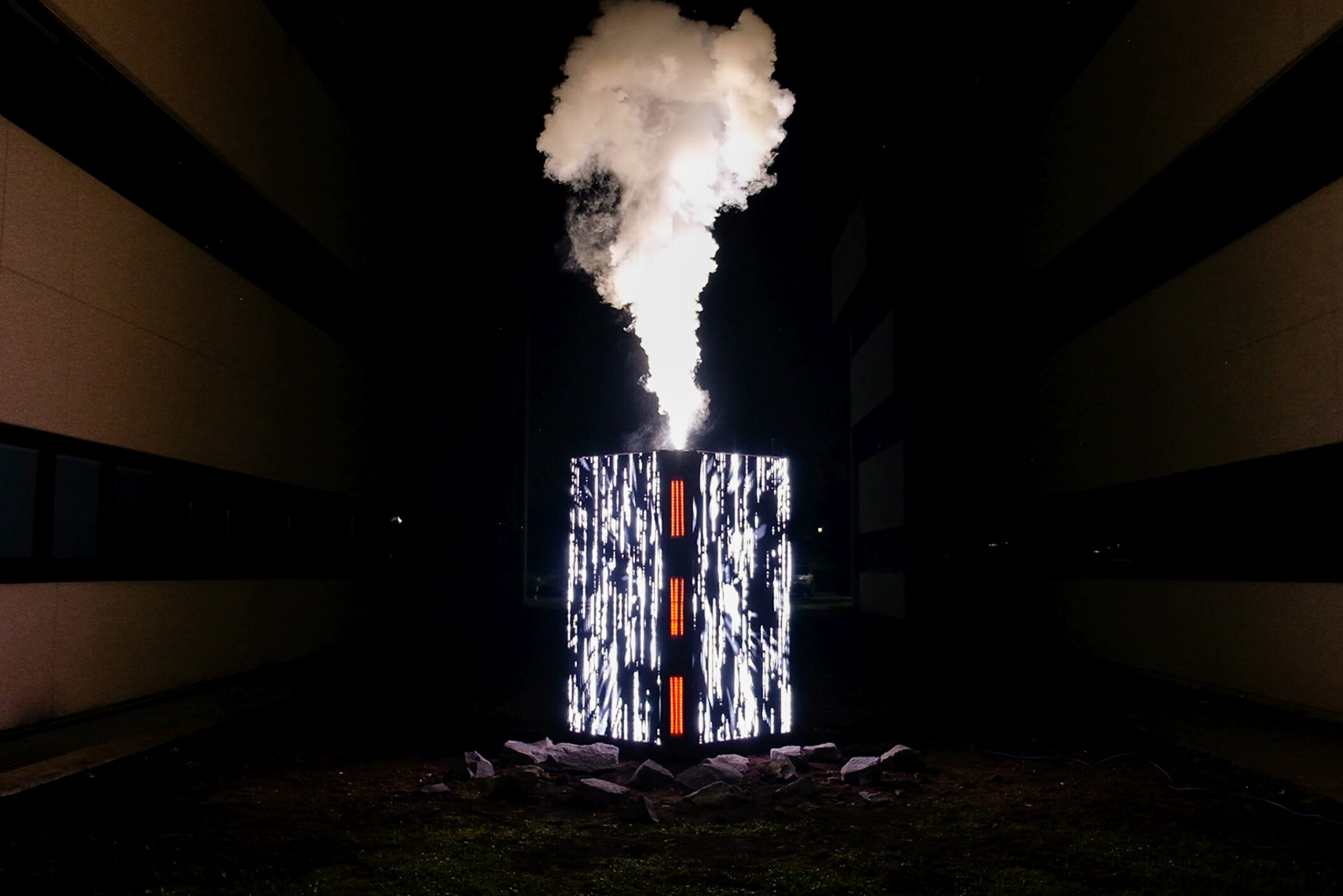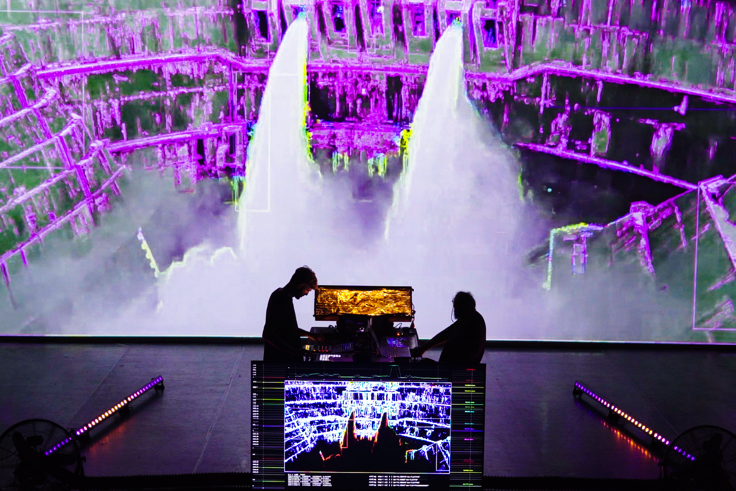 The liminal state of altered consciousness arises from speculative narratives where the artists activate a liminal rite in which the audience takes on the central role of enchantment generator, thus constituting the fantastical substance, the magical matter that frees itself from a disenchanted world overwhelmed by a cynical realism. The duo defines a transmedial aesthetic characterized by dark environments, where light, video and sound construct cyclic patterns, sudden glimpses, suspensions and hypnotic crescendos that become disruptive energy and lead to an unexpected rupture.