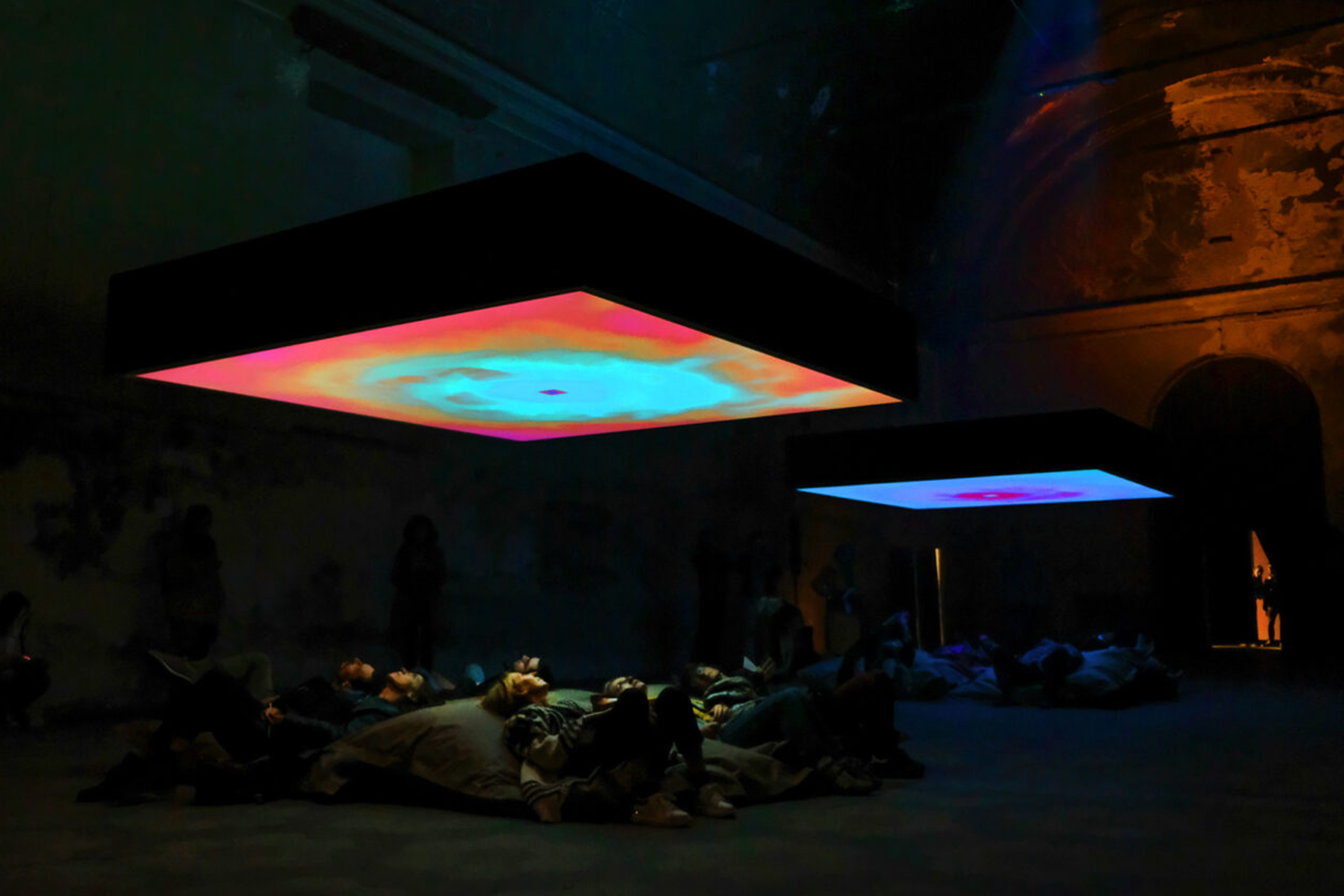 For over a decade, transmedia artists Saverio Villirillo and Gregorio Comandini have been exploring the relationships between humans and machines, producing works ranging from installations, exhibitions, and social practices. After founding NONE collective, the duo of architects and A/V artists continues their investigation into the threshold between perception, consciousness and imagination with artistic practices that induce the audience into a liminal state. Through the language of new media, the artists aim to guide participants in their works into ecstatic states where the boundary between reality and imagination dissolves. Mental journeys are generated by overstimulated bodily senses, assuming a condition of permanent change between present and future, fiction and reality, possible and impossible.