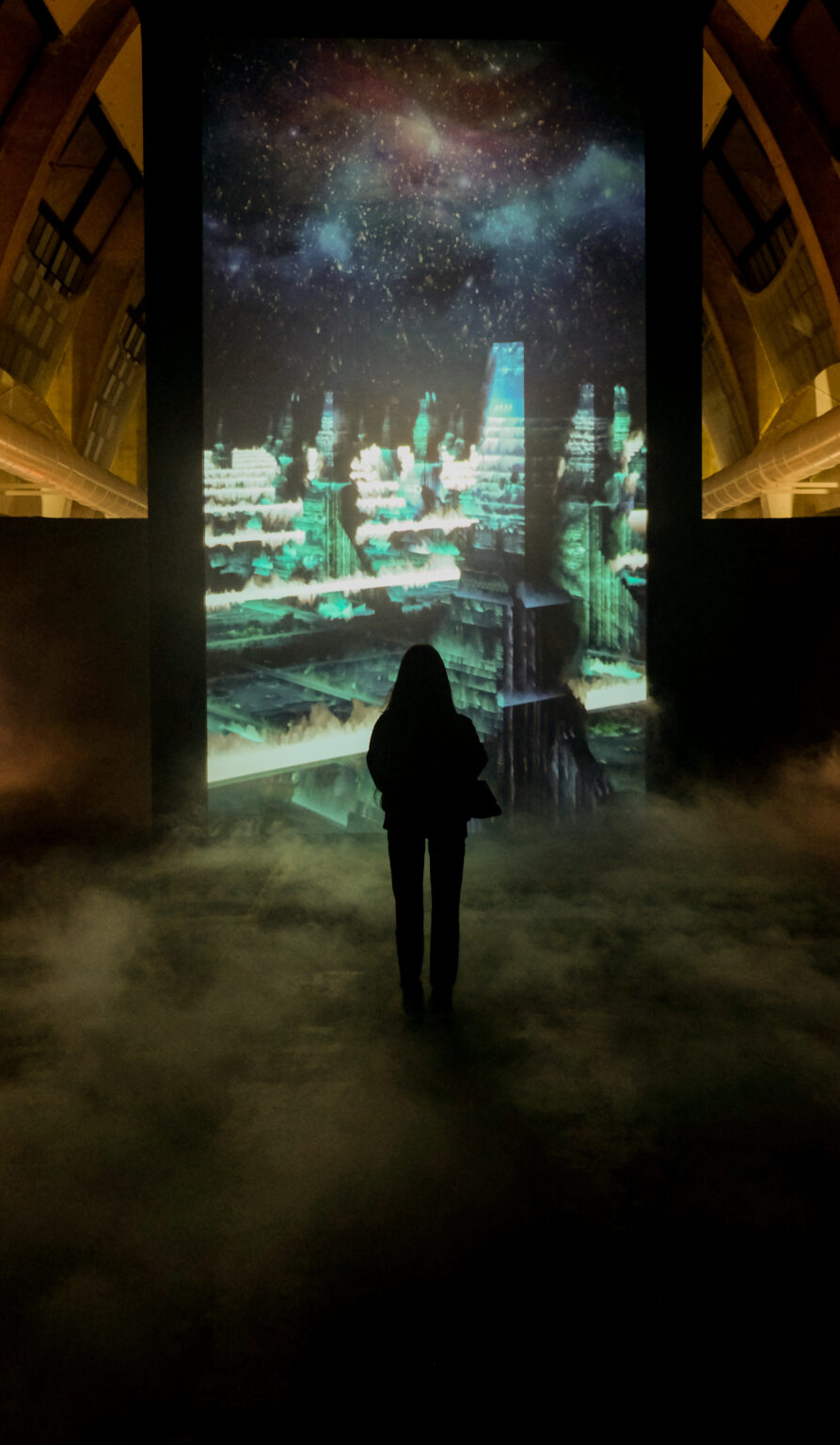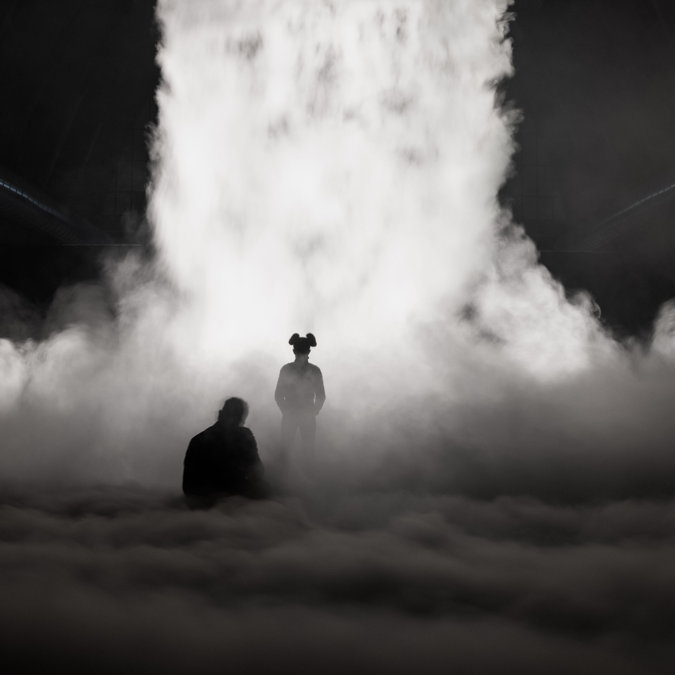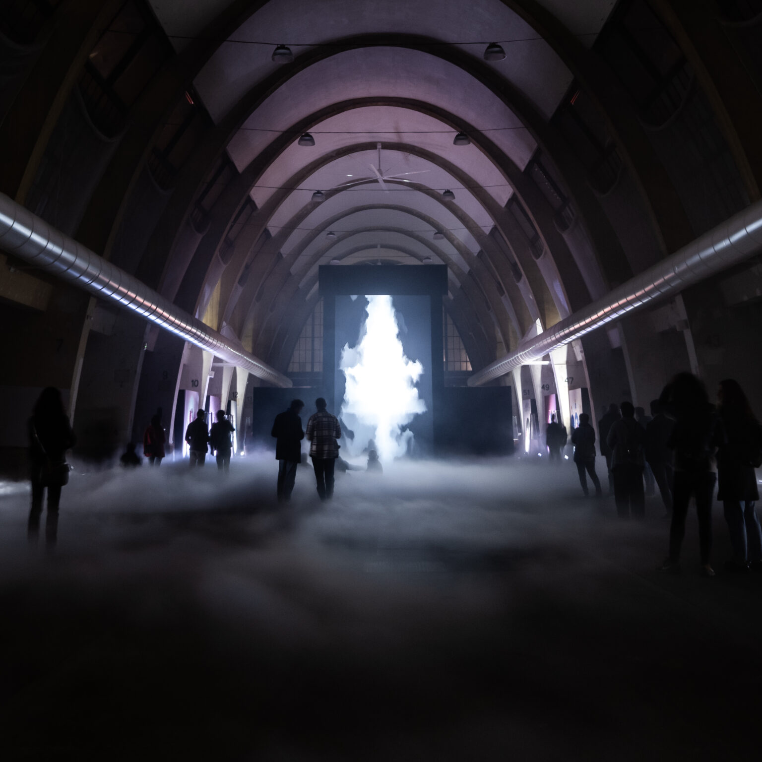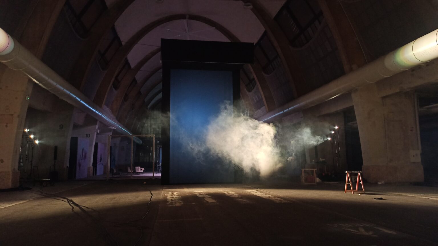 FALLING DREAMS is an ephemeral immersive installation that merges tangible atmosphere and digital illusion. Constructed around a six-meter structure, the work stages “clouds” that seem to fall, suspended before a large vertical screen. The setup integrates fog machines, 4K projection, lights, and spatial sound to immerse visitors in a dream-like environment. Rather than telling a fixed story, FALLING DREAMS invites contemplation: to observe, pause, and drift into a liminal zone between everyday life and reverie. As participants inhale, exhale, detach, and suspend their thoughts, the installation becomes a threshold space for introspection. First shown in 2021, FALLING DREAMS has been configured in variable dimensions (e.g. 10×10×7 m) with a central “waterfall” of cloud effect around 4×2×6 m.