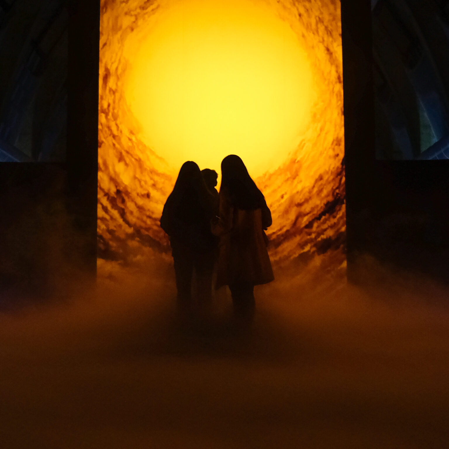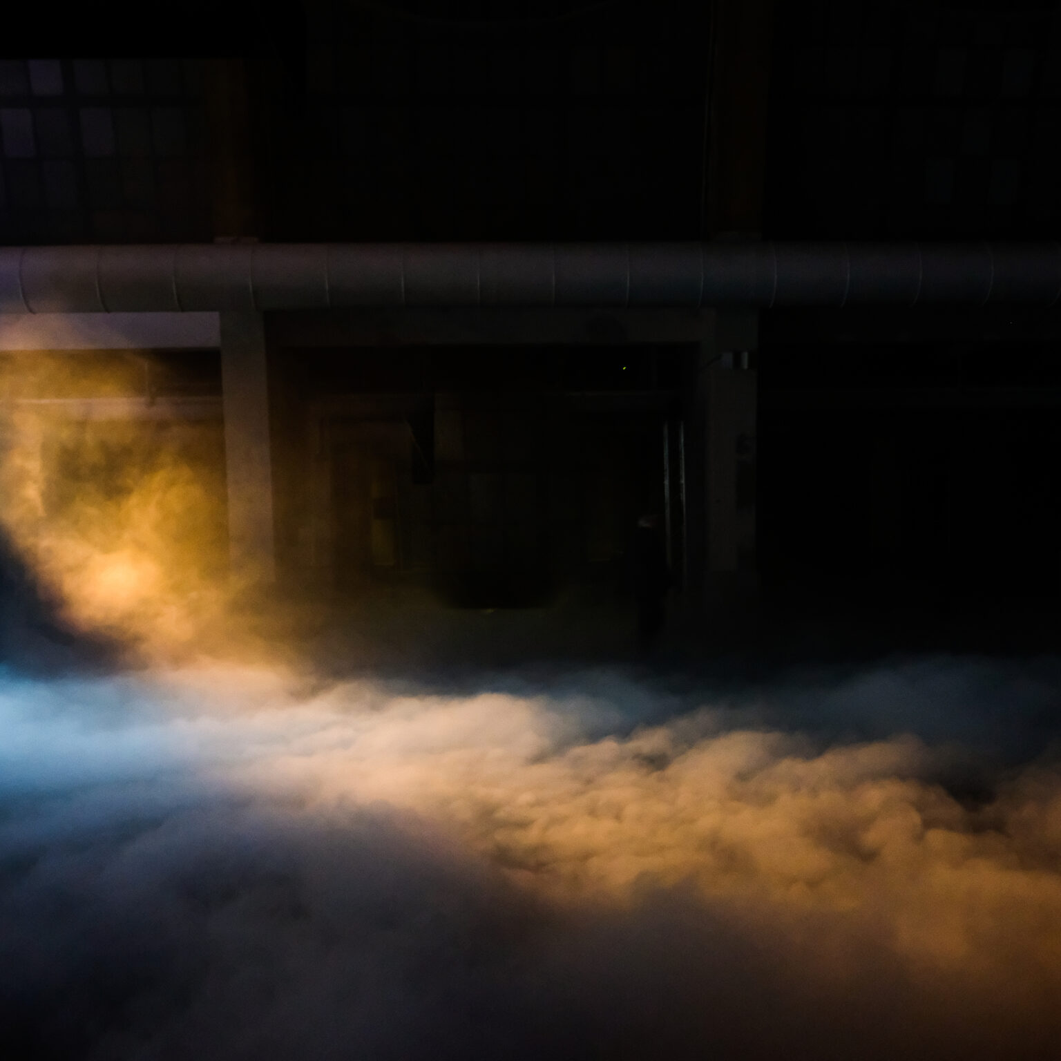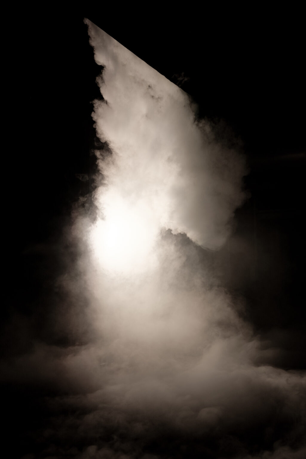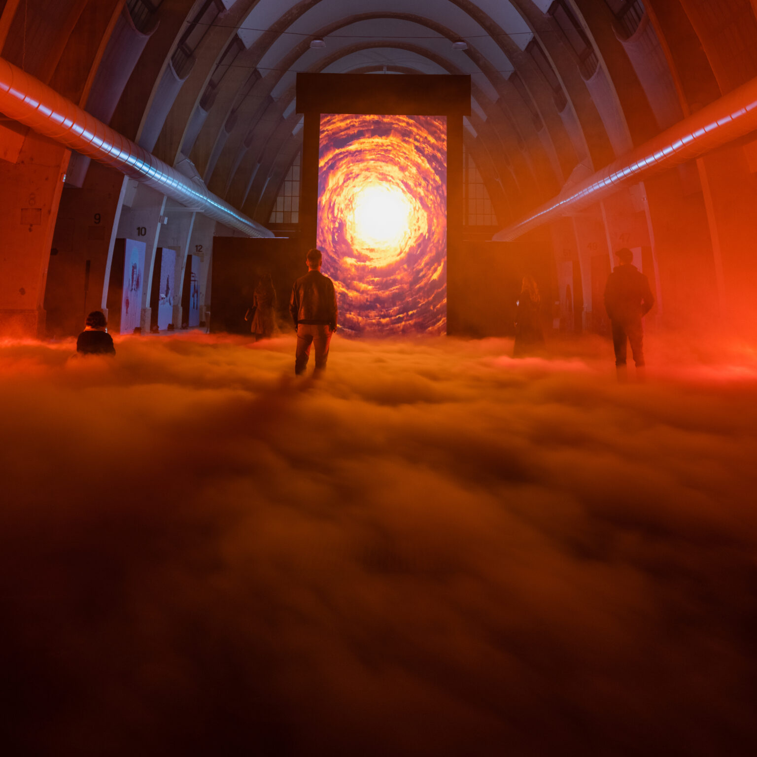 FALLING DREAMS is an ephemeral immersive installation that merges tangible atmosphere and digital illusion. Constructed around a six-meter structure, the work stages “clouds” that seem to fall, suspended before a large vertical screen. The setup integrates fog machines, 4K projection, lights, and spatial sound to immerse visitors in a dream-like environment. Rather than telling a fixed story, FALLING DREAMS invites contemplation: to observe, pause, and drift into a liminal zone between everyday life and reverie. As participants inhale, exhale, detach, and suspend their thoughts, the installation becomes a threshold space for introspection. First shown in 2021, FALLING DREAMS has been configured in variable dimensions (e.g. 10×10×7 m) with a central “waterfall” of cloud effect around 4×2×6 m.