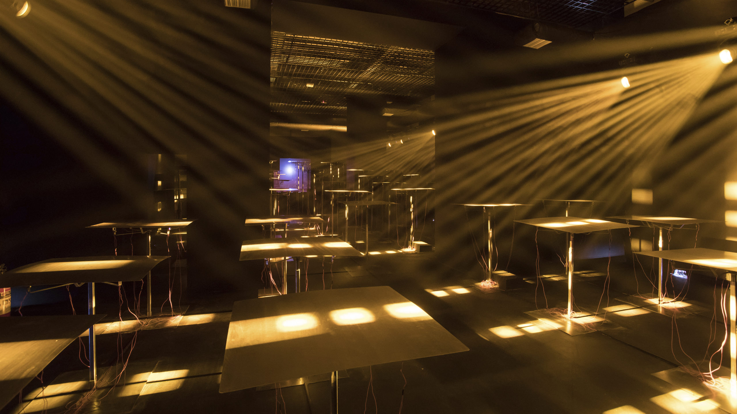 The liminal state of altered consciousness arises from speculative narratives where the artists activate a liminal rite in which the audience takes on the central role of enchantment generator, thus constituting the fantastical substance, the magical matter that frees itself from a disenchanted world overwhelmed by a cynical realism. The duo defines a transmedial aesthetic characterized by dark environments, where light, video and sound construct cyclic patterns, sudden glimpses, suspensions and hypnotic crescendos that become disruptive energy and lead to an unexpected rupture.