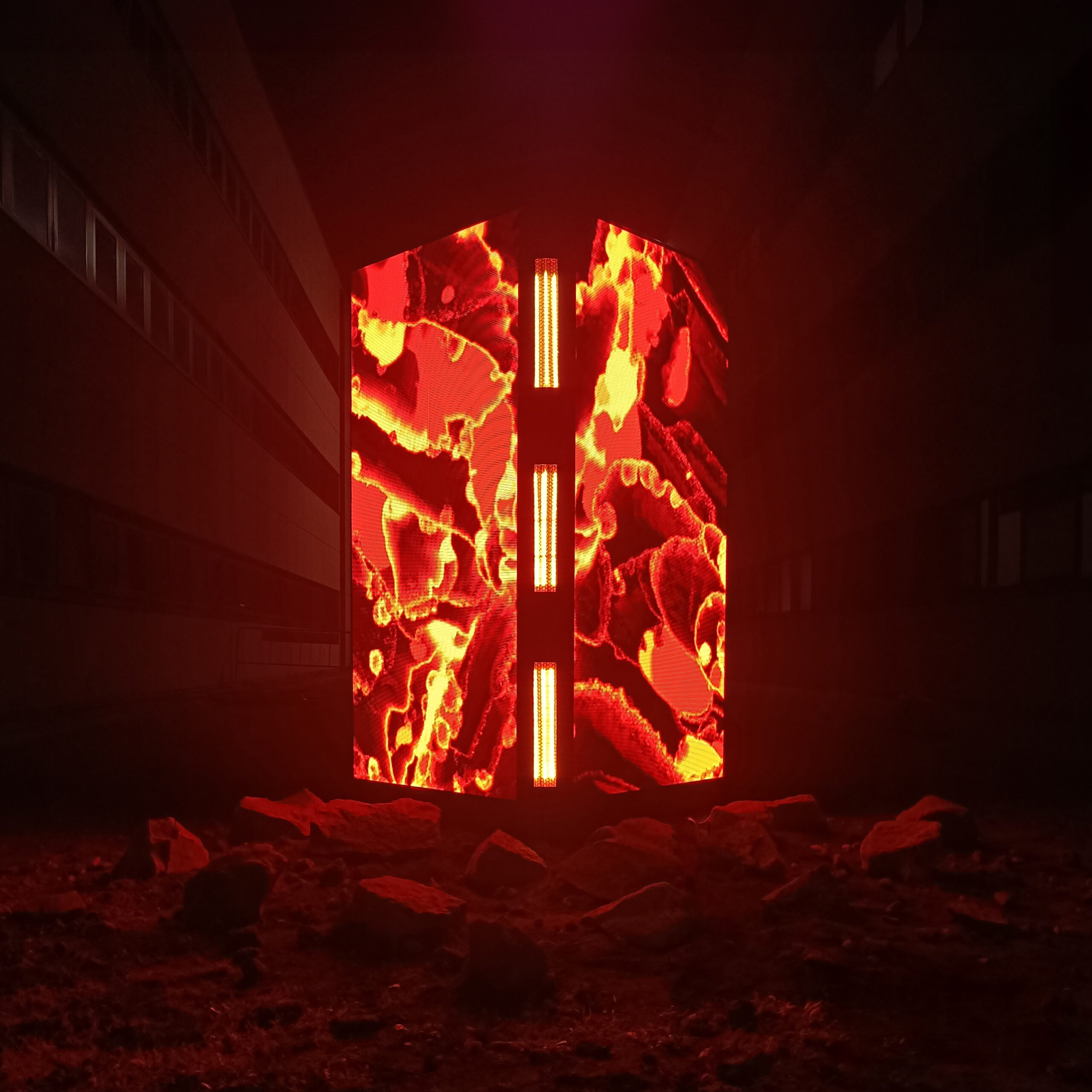 PULSE seeks to serve as a means of drawing attention to sustainability by implementing a harmonious hybridization of science and art, which proves functional in fostering transdisciplinary research, inquiry, and experimentation. Straddling the line between aesthetic narrative and educational tool, this multimedia monolith challenges perceptual habits shaped by recurring elements of Anthropocentrism.